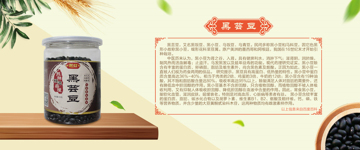 中醫(yī)歷來(lái)認(rèn)為,黑小豆為腎之谷,入腎。具有健脾利水,消腫下氣;滋腎陰,潤(rùn)肺燥,制風(fēng)熱而活血解毒;止盜汗,烏發(fā)黑發(fā)以及延年益壽的功能?,F(xiàn)代藥理研究證實(shí),黑小豆除含有豐富的蛋白質(zhì)、卵磷脂,脂肪及維生素外,尚含黑色素及煙酸。正因?yàn)槿绱?,黑小豆一直被人們視為藥食兩用的佳品?/span> 研究提示,黑豆具有高蛋白、低熱量的特性。黑小豆中蛋白質(zhì)含量高達(dá)36%-40%,相當(dāng)于肉類的2倍、雞蛋的3倍、牛奶的12倍;黑小豆含有19種油酸,其不飽和脂肪酸含量達(dá)80%,吸收率高達(dá)95%以上,除能滿足人體對(duì)脂肪的需要外,還有降低血中膽固醇的作用。黑小豆基本不含膽固醇,只含植物固醇,而植物固醇不被人體吸收利用,又有抑制人體吸收膽固醇、降低膽固醇在血液中含量的作用。因此,常食黑小豆,能軟化血管,滋潤(rùn)皮膚,延緩衰老。特別是對(duì)高血壓、心臟病等患者有益。 黑小豆含較豐富的蛋白質(zhì)、脂肪、碳水化合物以及胡蘿卜素、維生素B1、B2、煙酸及粗纖維,鈣,磷,鐵等營(yíng)養(yǎng)物質(zhì),并含少量的大豆黃酮甙染料木苷,這兩種物質(zhì)均有雌激素樣作用。(以上信息來(lái)自百度百科)