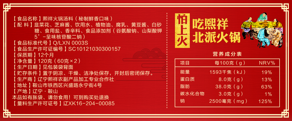 韭菜花、芝麻醬、飲用水、植物油、腐乳、黃豆醬、白砂糖、食用鹽、香辛料、食品添加劑(谷氨酸鈉、山梨酸鉀、5-呈味核苷酸二鈉)