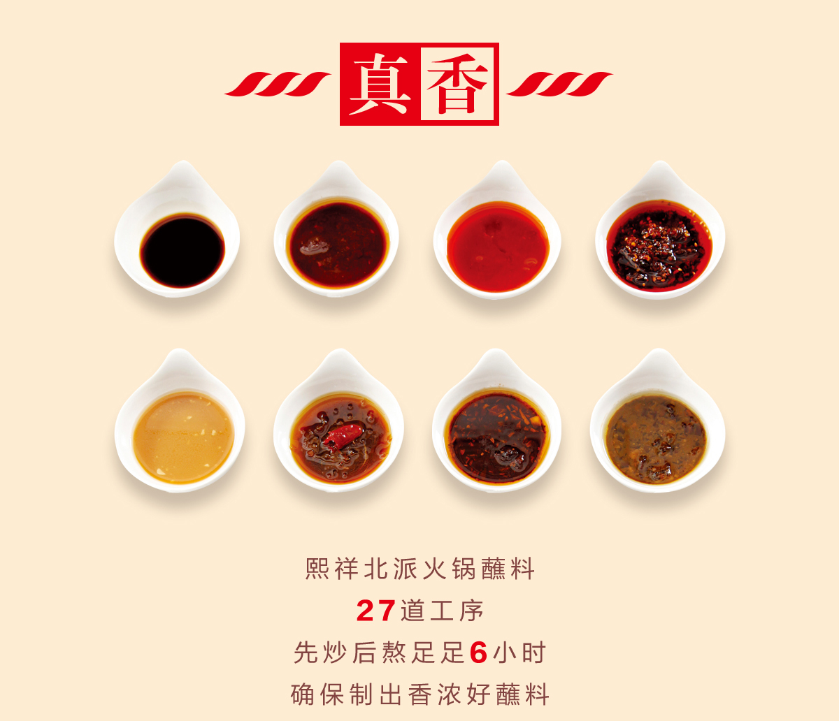 飲用水、植物油、芝麻醬、腐乳、韭菜花、郫縣豆瓣、辣椒、食用鹽、白砂糖、香辛料、食品添加劑(谷氨酸鈉、山梨酸鉀、5-呈味核苷酸二鈉)